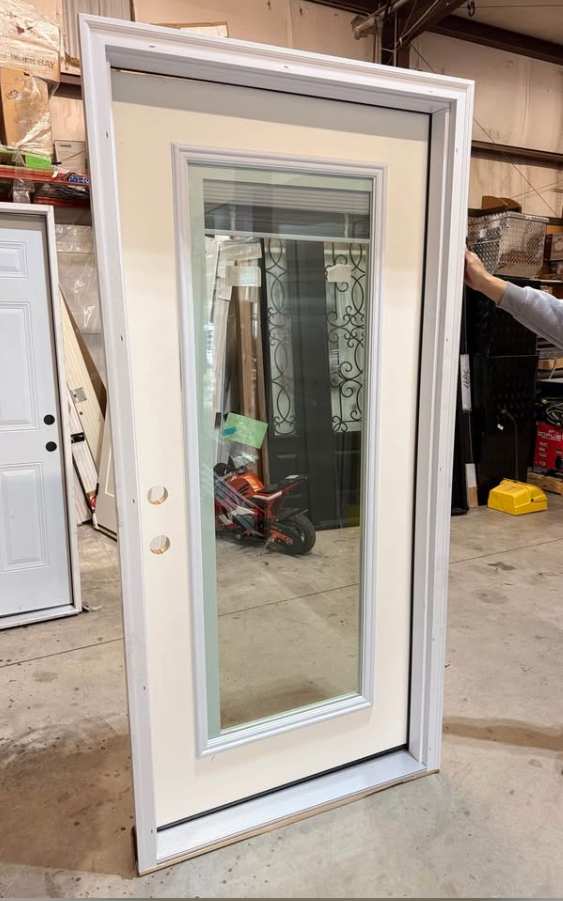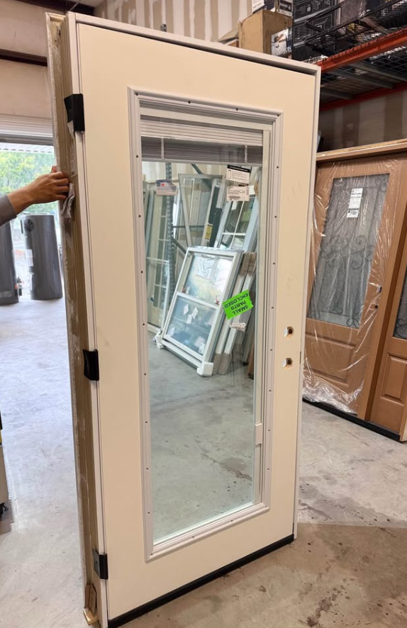 36 in. x 80 in. Internal Blinds Right-Hand Inswing Full Lite Clear Classic Primed Fiberglass Smooth Prehung Front Door