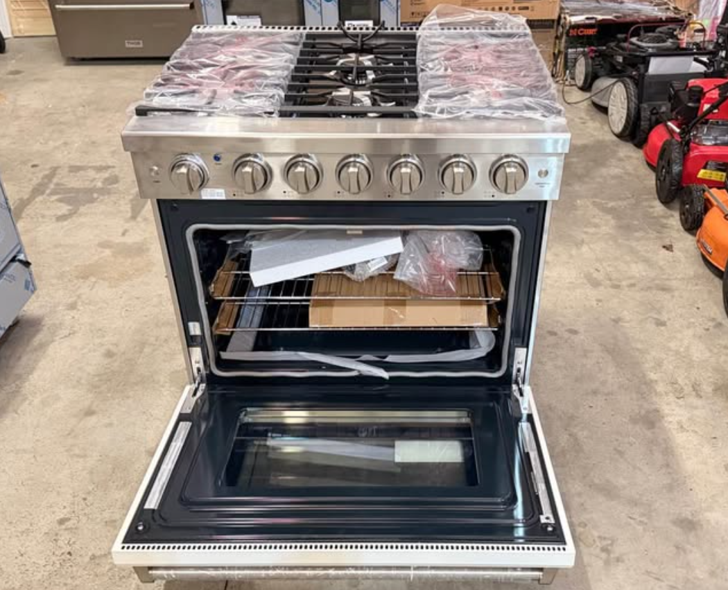 36 in. 6 Burners Freestanding Propane Gas Range in Stainless Steel with 6.0 cu. ft. Convection Oven and White Oven Door (Small Dent)