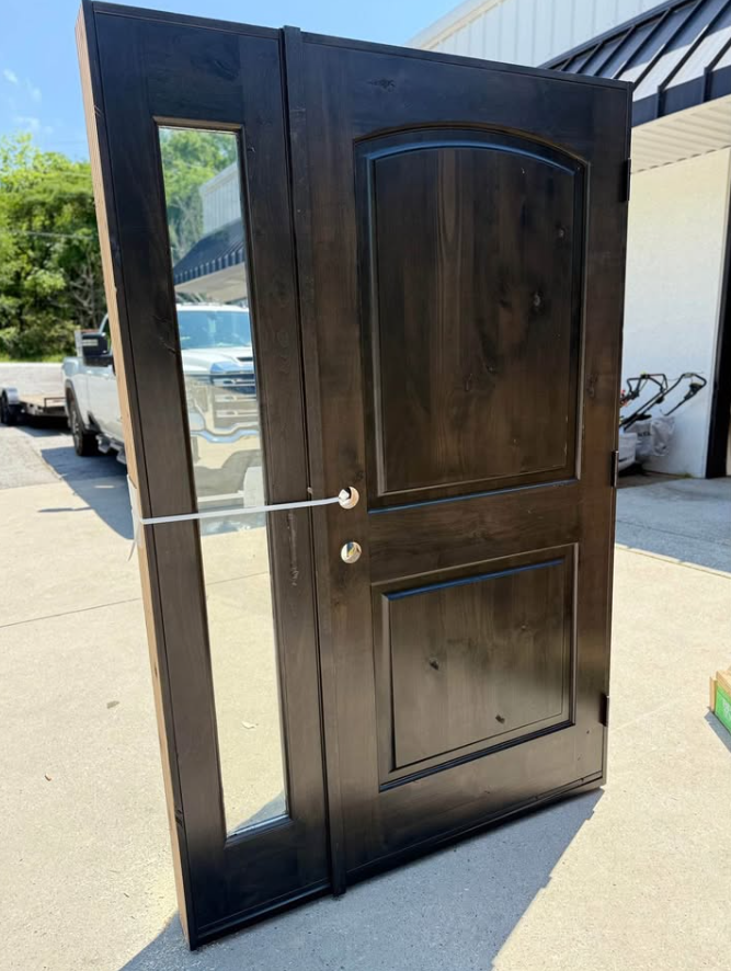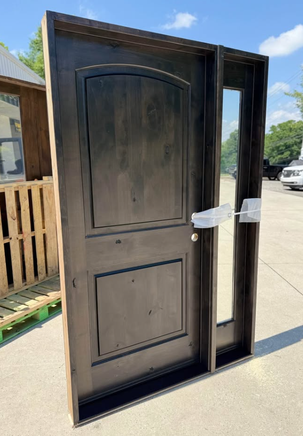 Krosswood Doors 50 in. x 80 in. Rustic Knotty Alder 2-Panel Left-Hand/Inswing Clear Glass Black Stai
