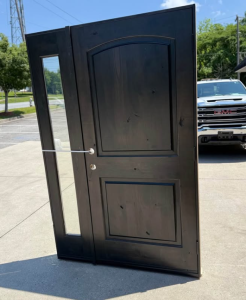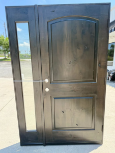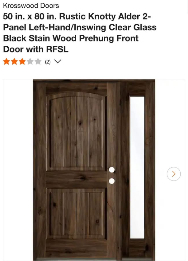 Be the first to review “Krosswood Doors 50 in. x 80 in. Rustic Knotty Alder 2-Panel Left-Hand/Inswing Clear Glass Black Stai”