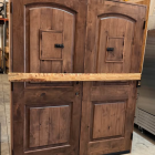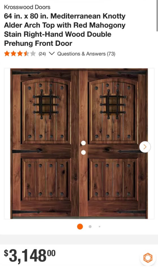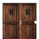 64 in. x 80 in. Mediterranean Knotty Alder Arch Top with Red Mahogony Stain Right-Hand Wood Double Prehung Front Door