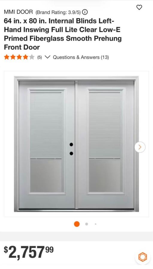 Be the first to review “MMI DOOR 64 in. x 80 in. Internal Blinds Left-Hand Inswing Full Lite Clear Low-E Primed Fiberglass Smooth Prehung Front Door”