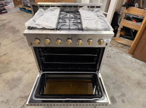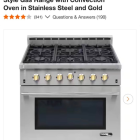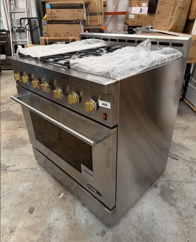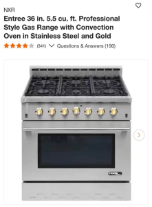 Be the first to review “NXR Entree 36 in. 5.5 cu. ft. Professional Style Gas Range with Convection Oven in Stainless Steel and Gold”