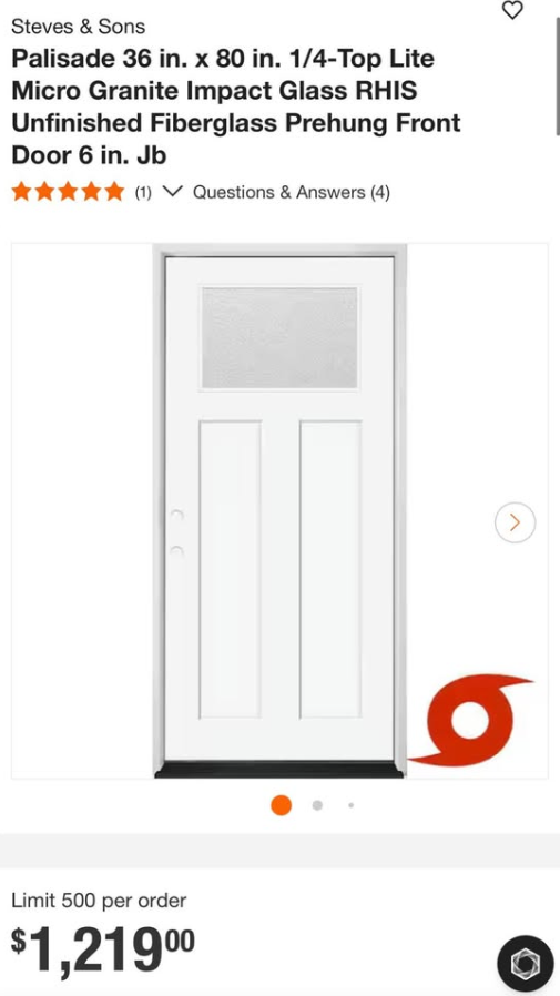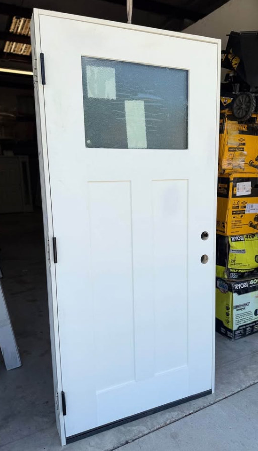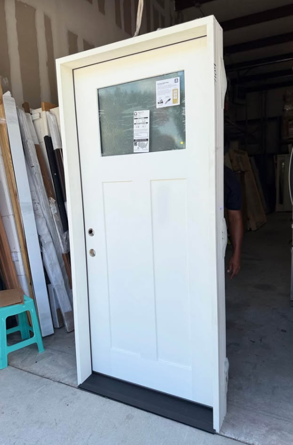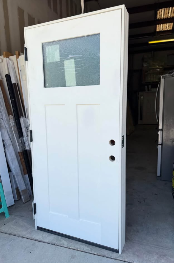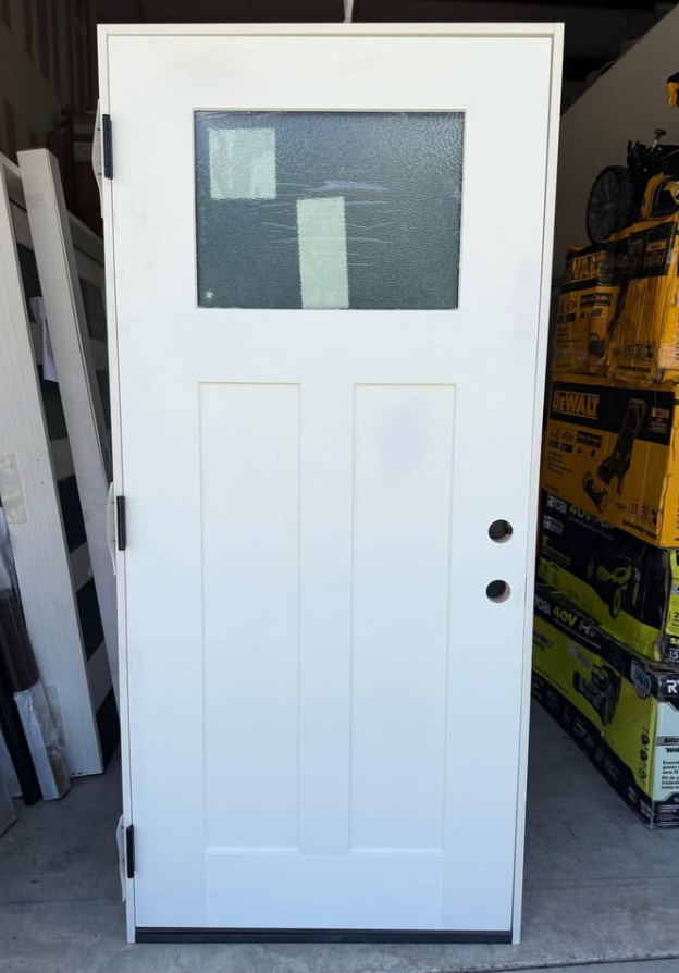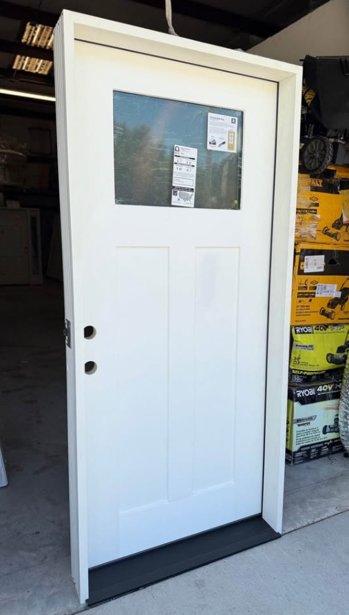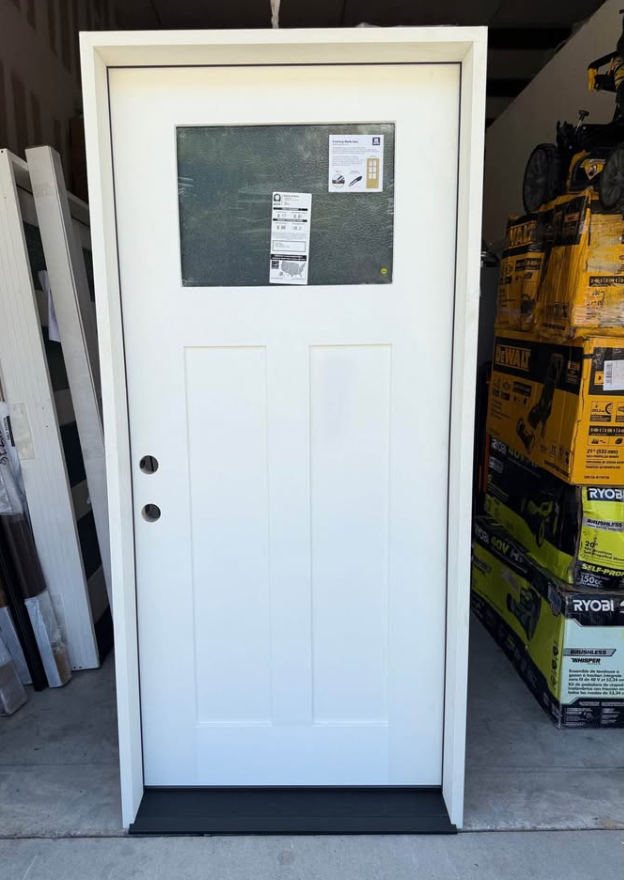 Palisade 36 in. x 80 in. 1/4-Top Lite Micro Granite Impact Glass RHIS Unfinished Fiberglass Prehung Front Door 6 in. Jb