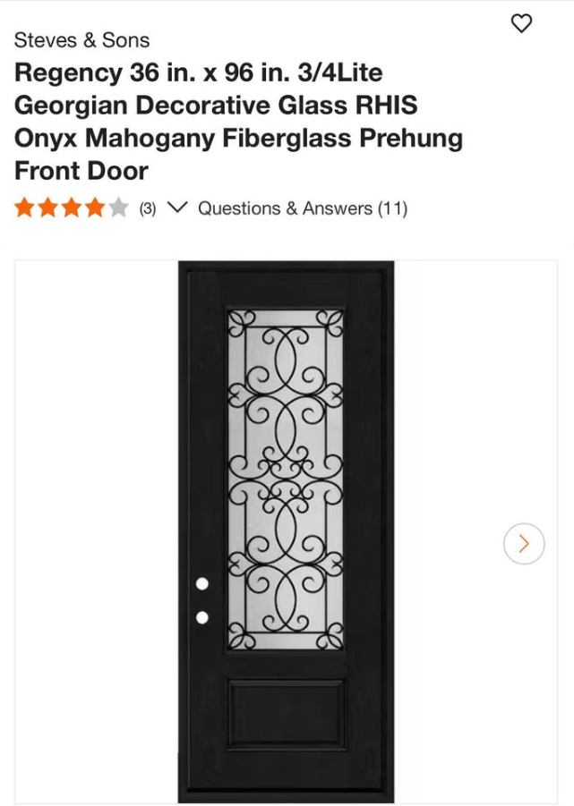 Be the first to review “Steves & Sons Regency 36 in. x 96 in. 3/4Lite Georgian Decorative Glass RHIS Onyx Mahogany Fiberglass Prehung Front Door”