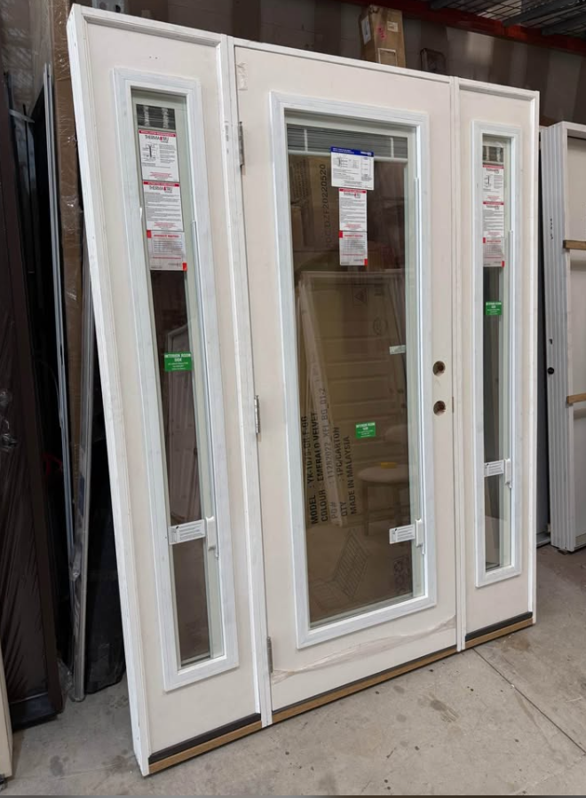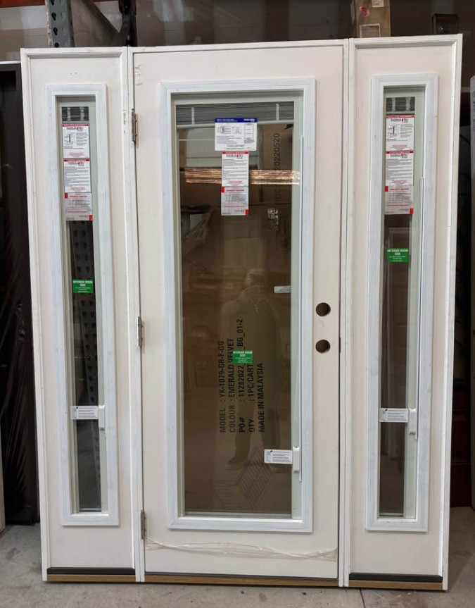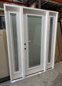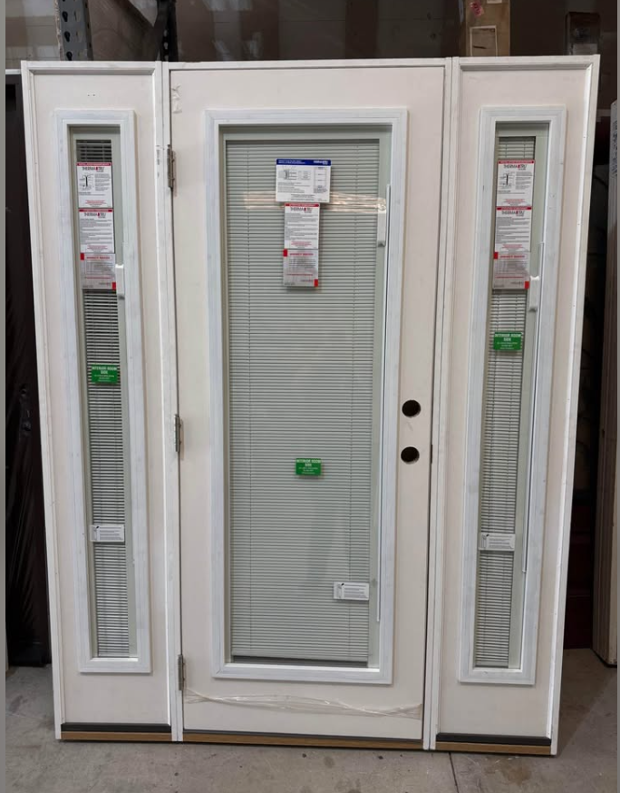 Therma-Tru 60 in. x 80 in. Internal Blinds Right-Hand Inswing Full Lite Clear Primed Prehung Front Door with Sidelites & Impact Glass Resistant!