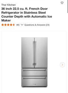 Be the first to review “Thor Kitchen 36 inch 22.5 cu. ft. French Door Refrigerator in Stainless Steel Counter Depth with Automatic Ice Maker”
