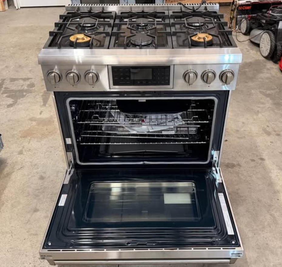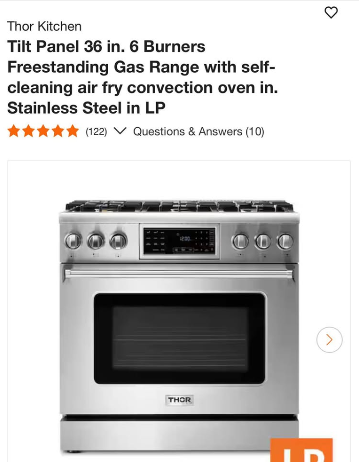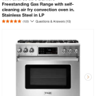 Tilt Panel 36 in. 6 Burners Freestanding Gas Range with self-cleaning air fry convection oven in. Stainless Steel in LP