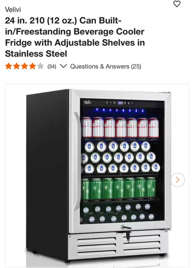 24 in. 210 (12 oz.) Can Built-in/Freestanding Beverage Cooler Fridge with Adjustable Shelves in Stainless Steel